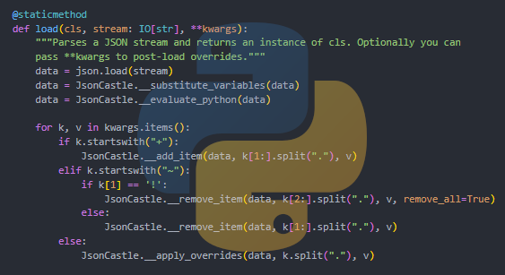 Built on top of the native json module with additional support for nested objects, variables, expressions, and post-load overrides via CLI.