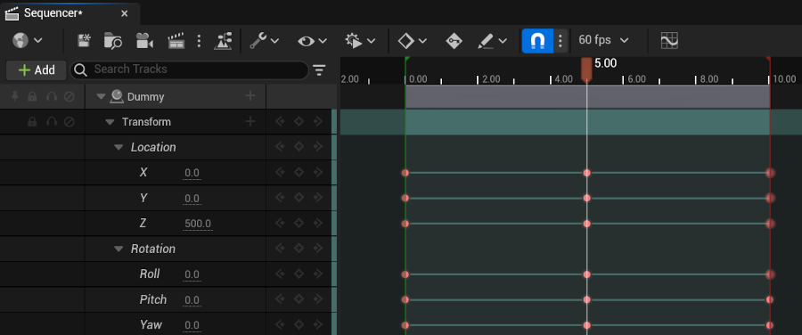 in the Content Browser (RMB → Cinematics → Level Sequence). Open this sequence in the Sequencer, bind the Dummy
