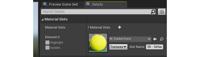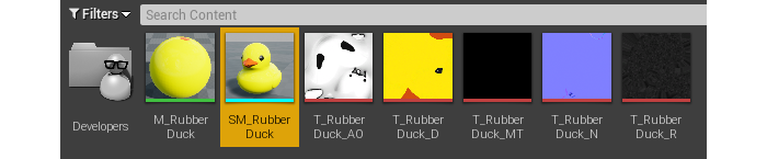 When you now hit Apply and Save (buttons in the top left corner), you should see back in the content browser a beautiful yellow rubber duck with an orange bill.