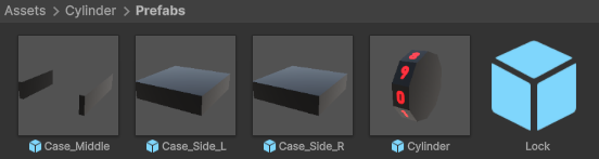 Repeat the same steps for one of the cylinders, don't forget to zero their positions, and do the same also for the case parts. While turning into a prefab the Case_Middle