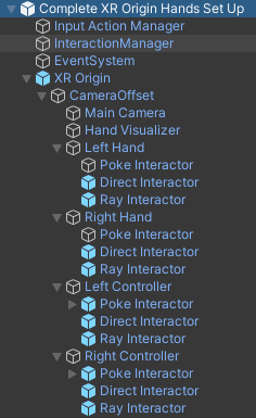 In fact, there is also a neat sample scene where you can see this prefab in action. Open Assets/Samples/XR Interaction Toolkit/2.3.2/Hands Interaction Demo/Runtime/HandsDemoScene.unity