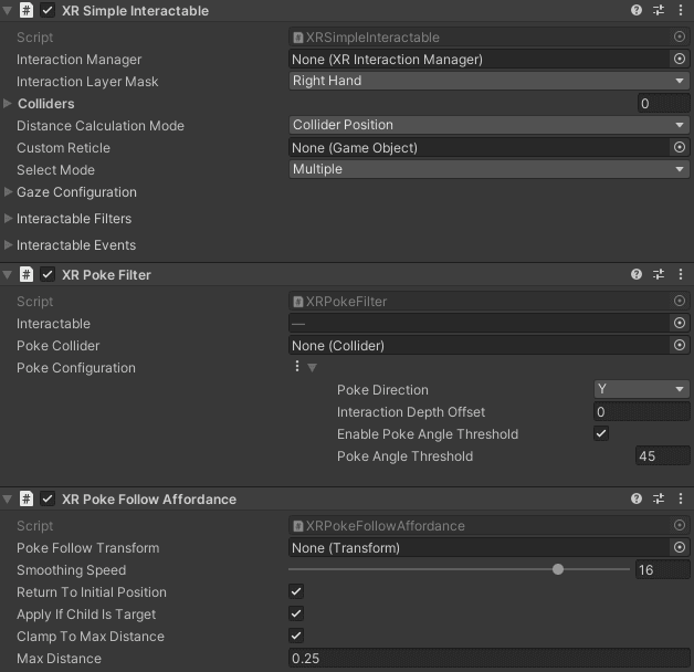 class. Since we will be relying on the poking affordance provided by the XR Toolkit