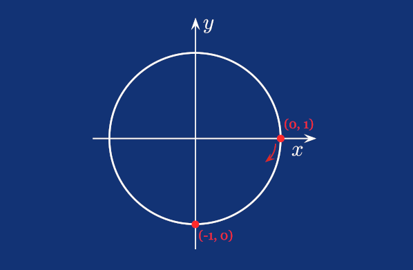 Do you remember the unit circle from the previous part, and how we discussed that the X and Y coordinates of a point on the circle correspond to cosine and sine functions? To rotate a point around the origin, we can use this same relationship withing the rotation matrix. For now, here's the one for 2D space.