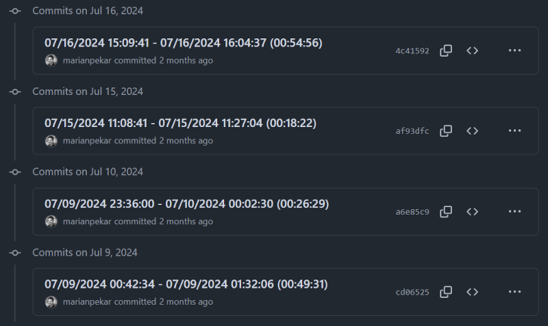 After some play sessions, you can browse your commits and even create some interesting statistics from the commit messages, which contain when and how long you've played, as you can see in the following image.